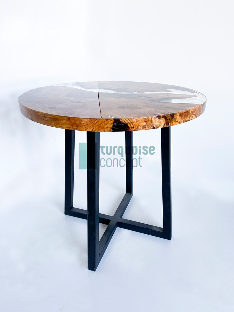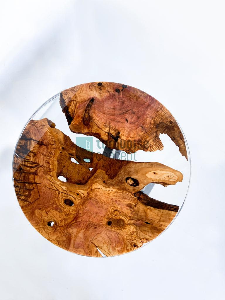Brushed Full Round Design 100 yrs old Olive Tree Logs, Transparent Clear Epoxy.