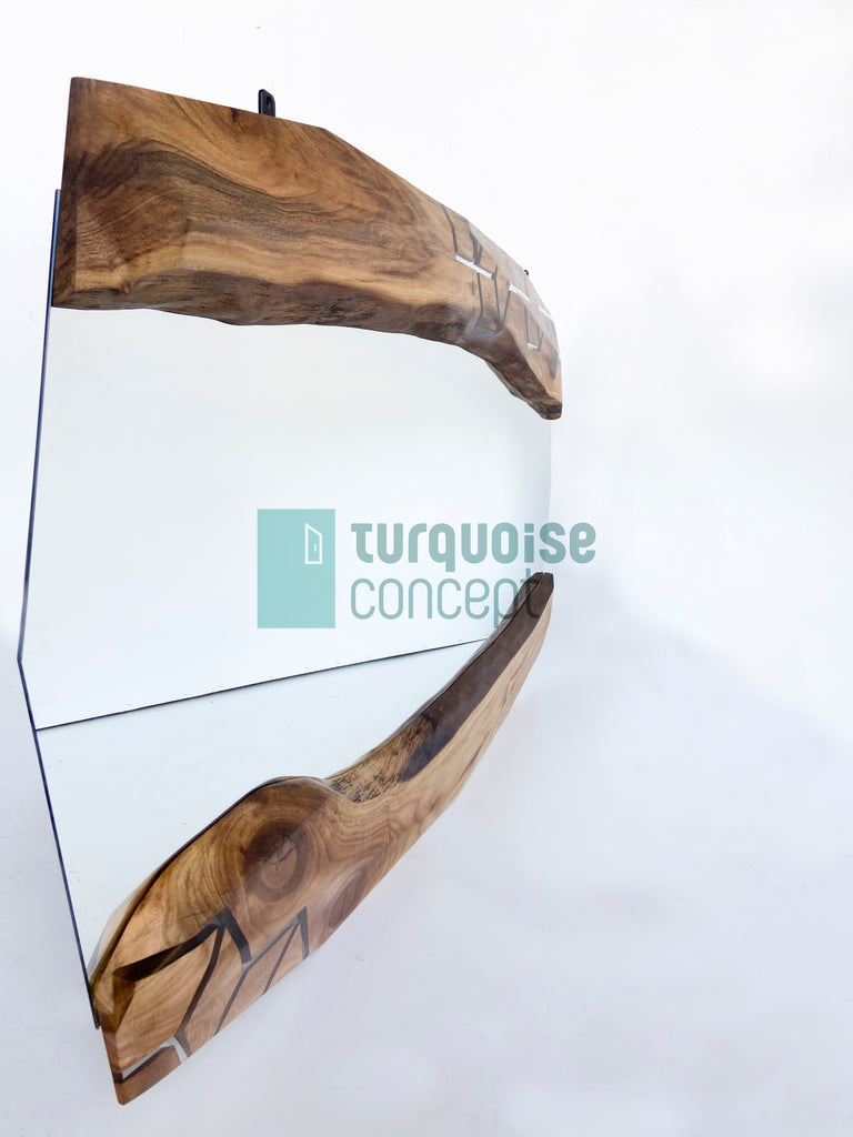 Contemporary Design Mirror, Walnut Tree Logs, Transparent Clear Epoxy