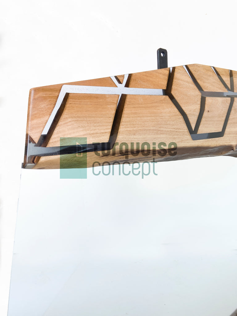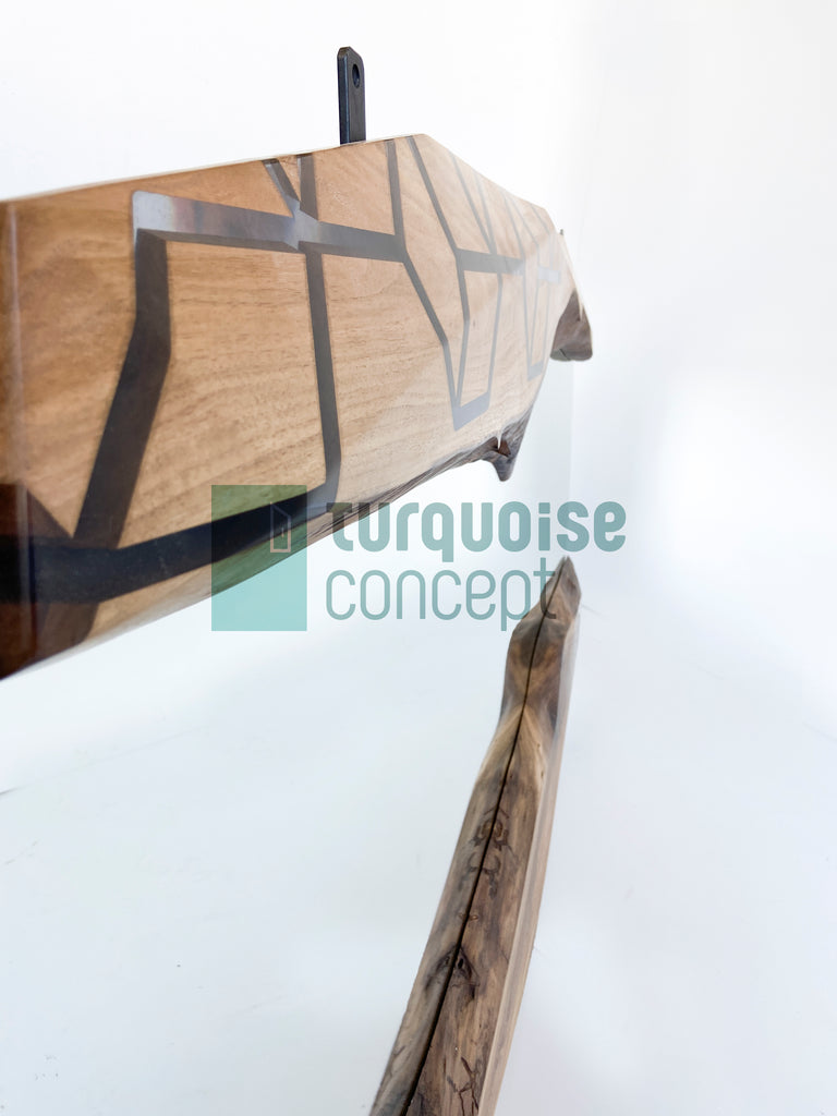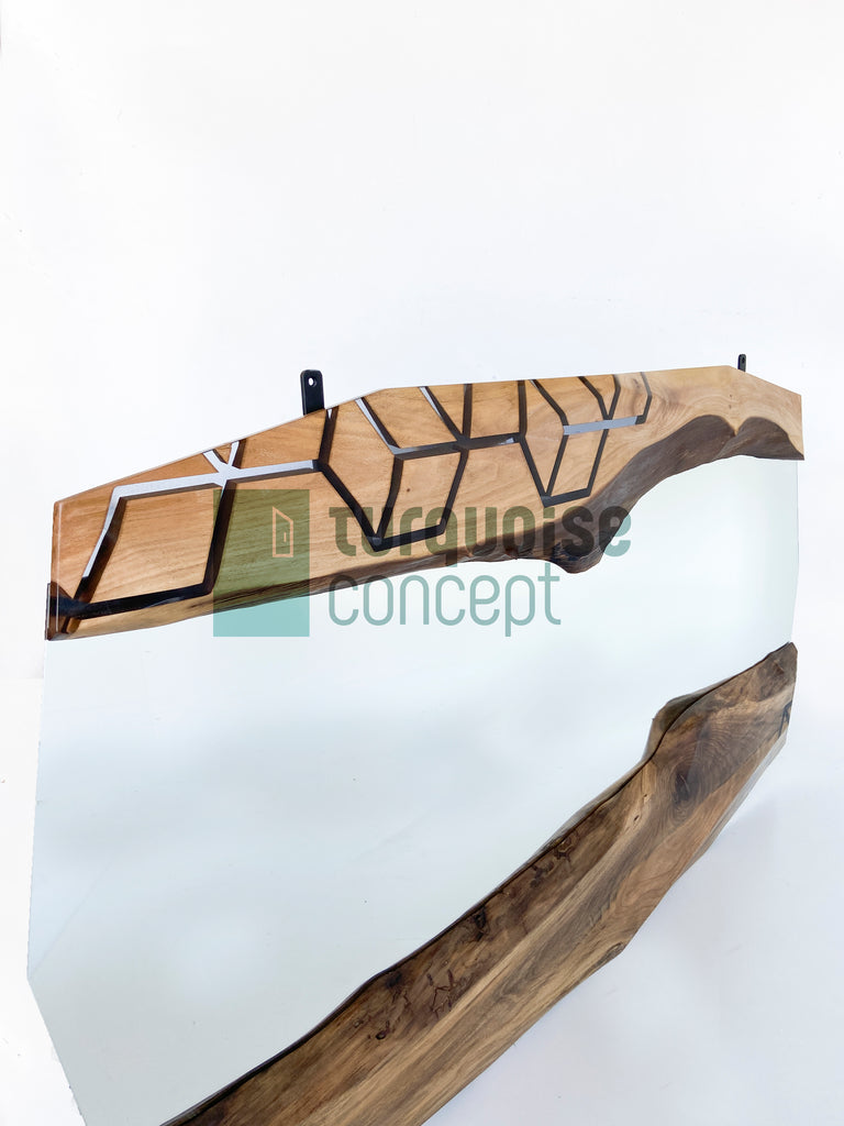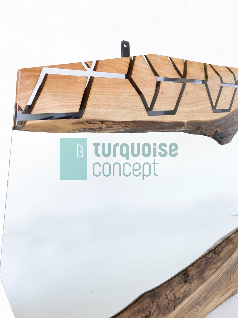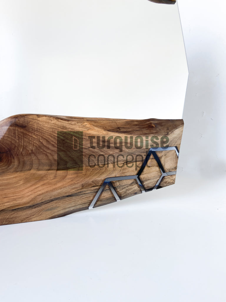 Contemporary Design Mirror, Walnut Tree Logs, Transparent Black Epoxy
