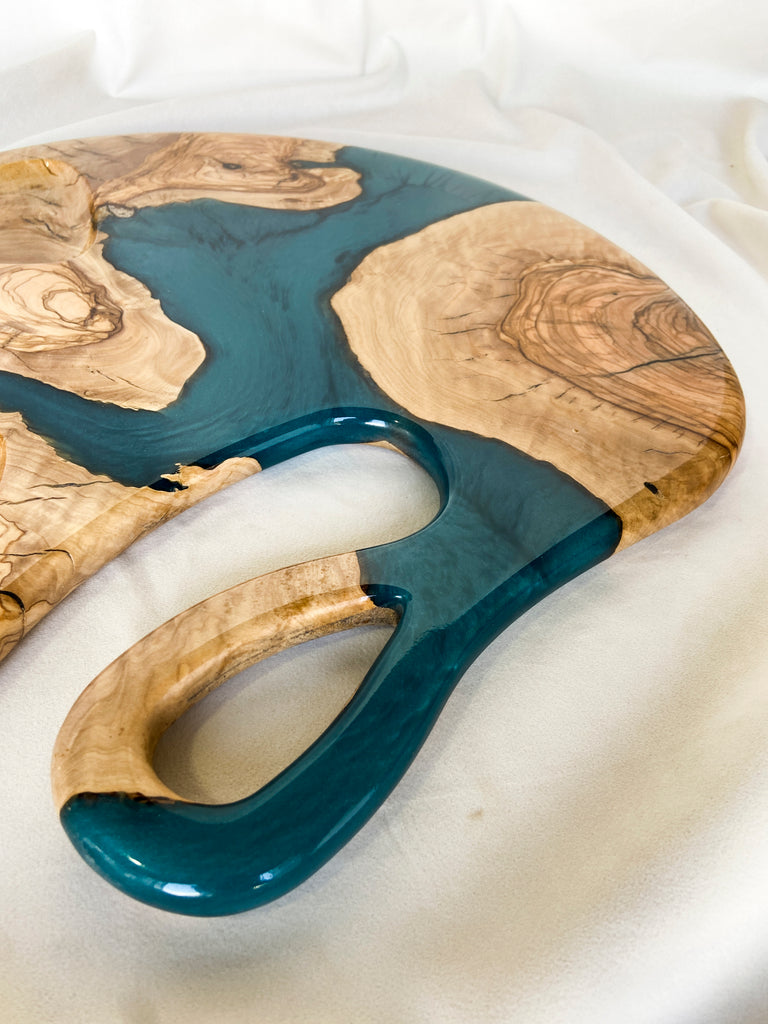 Wood Serving Board - Metallic blue epoxy resin and olive wood
