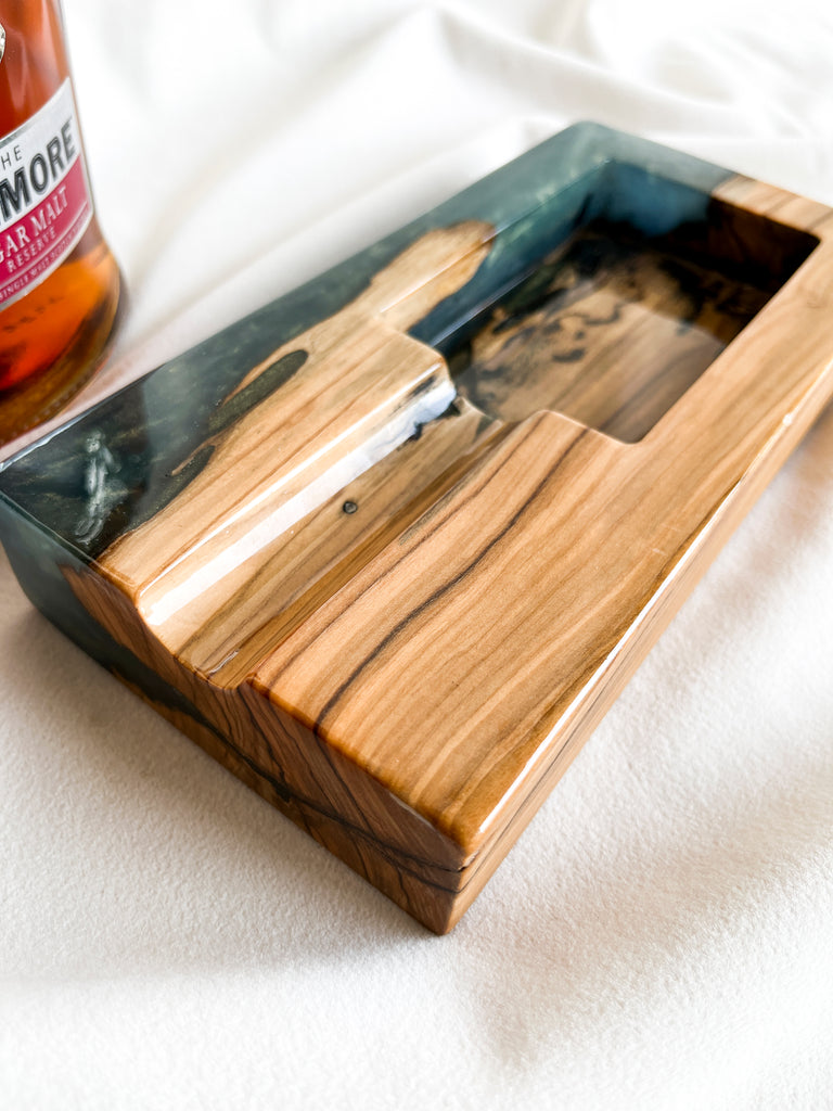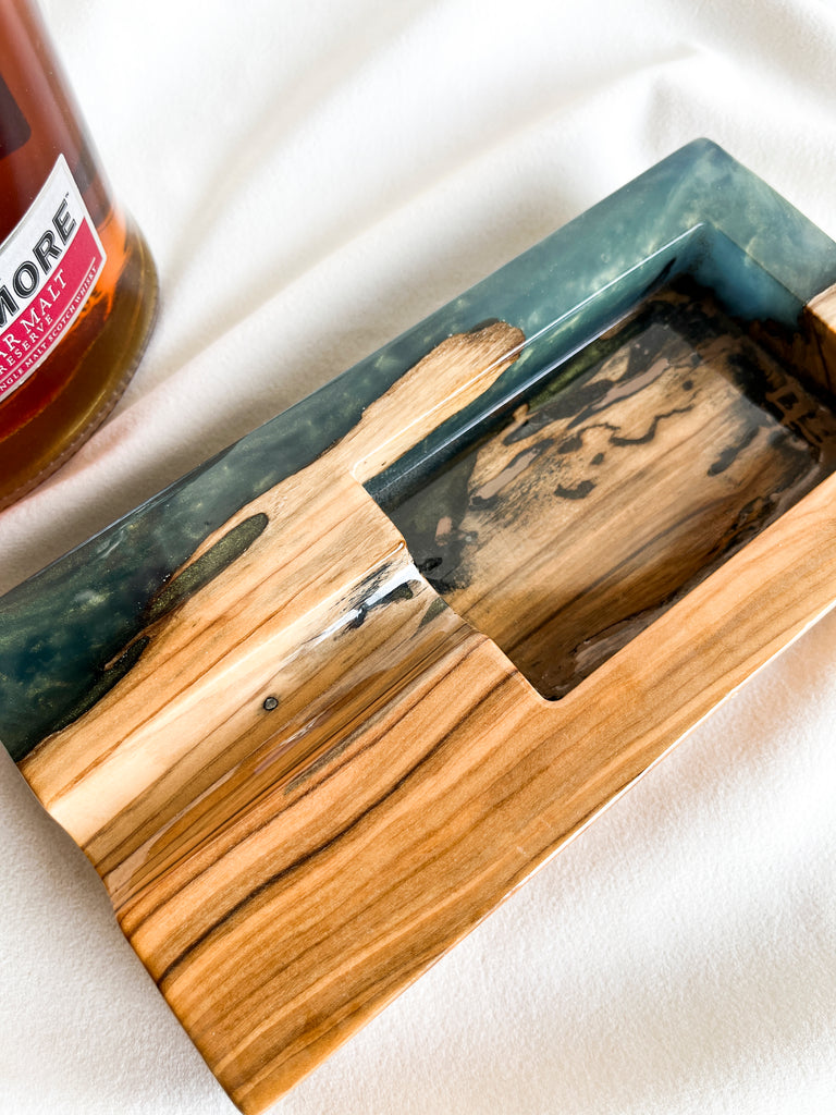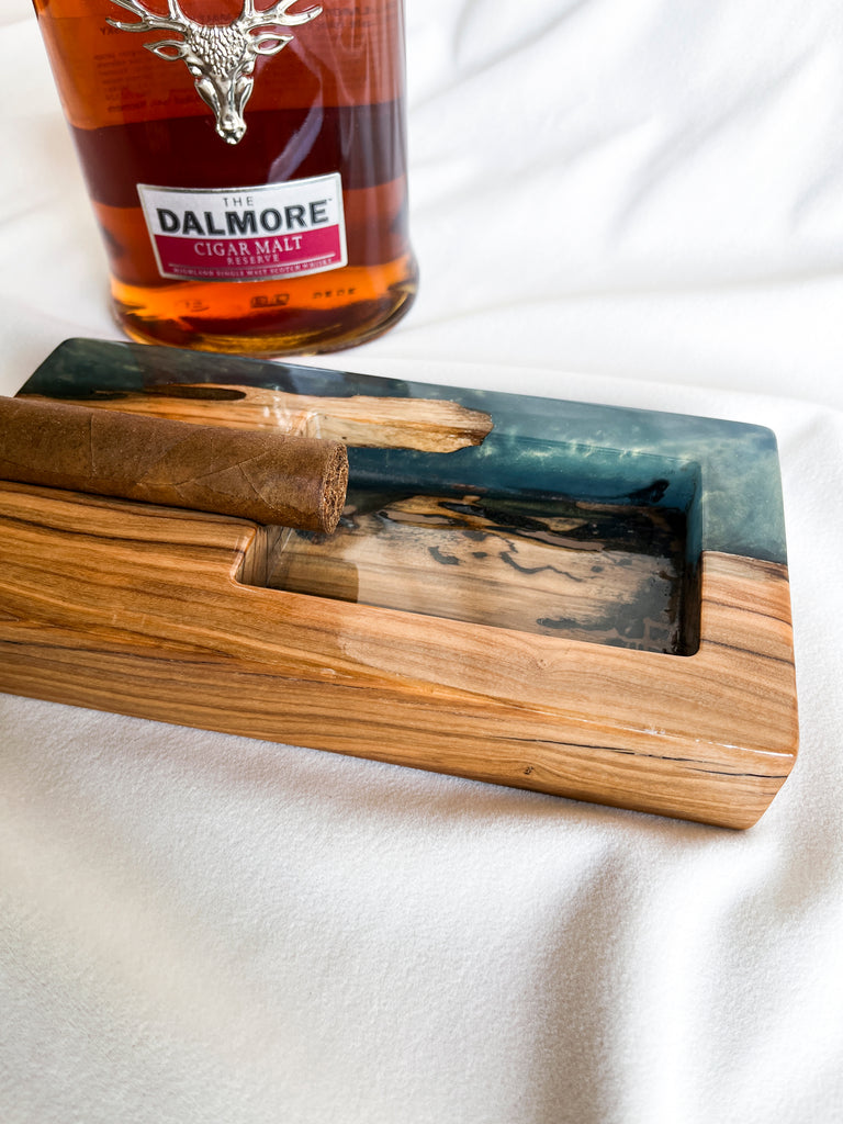 Cigar Ashtray - Olive wood and metallic gold green epoxy resin