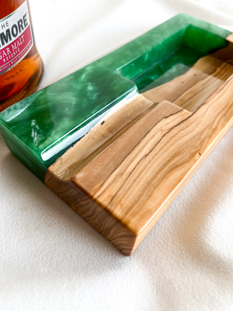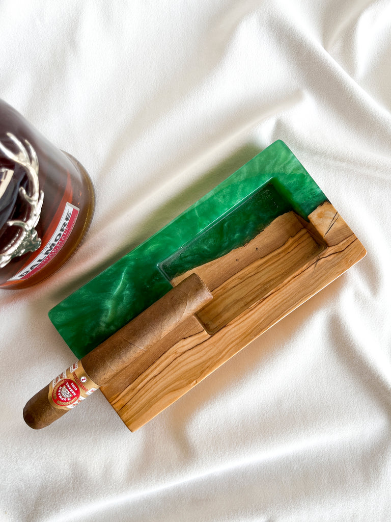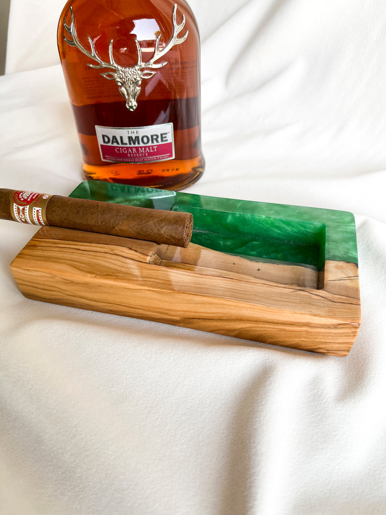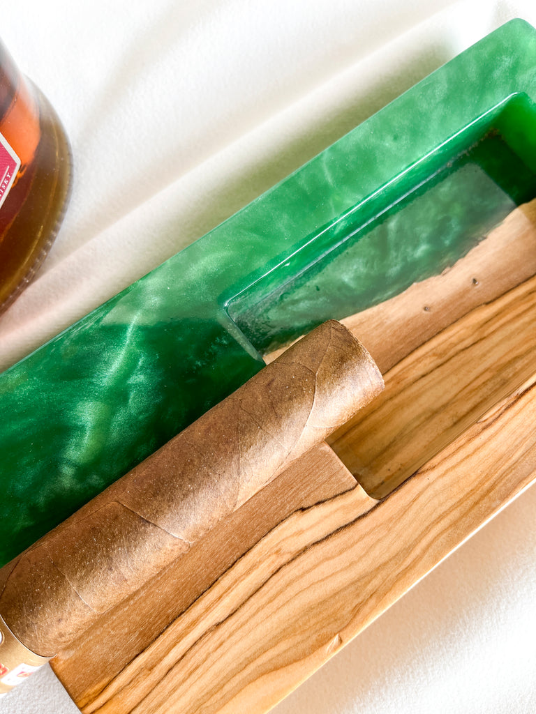 Cigar Ashtray - Olive wood and metallic green epoxy resin
