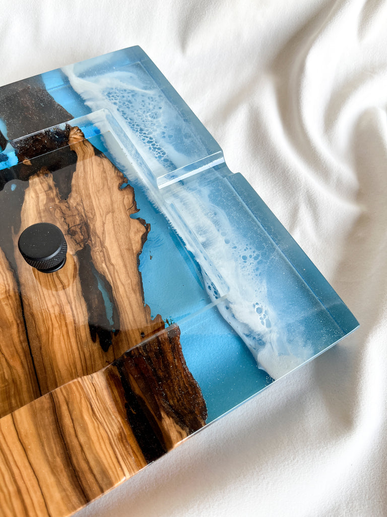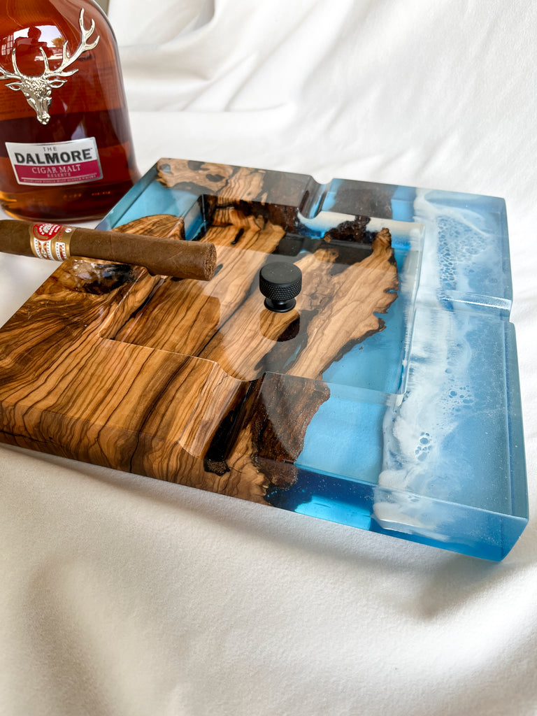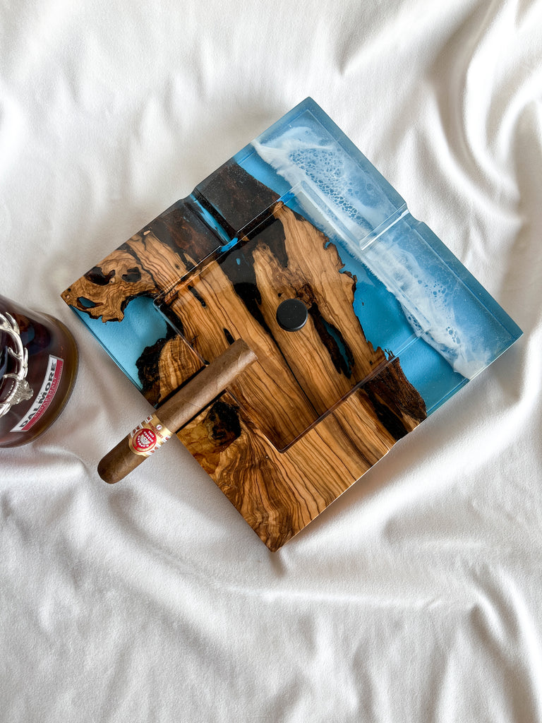 Cigar Ashtray Ocean - Olive wood and sea effect epoxy resin