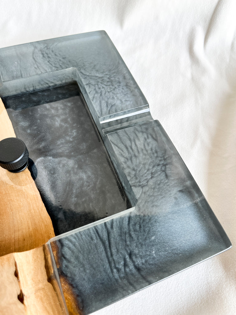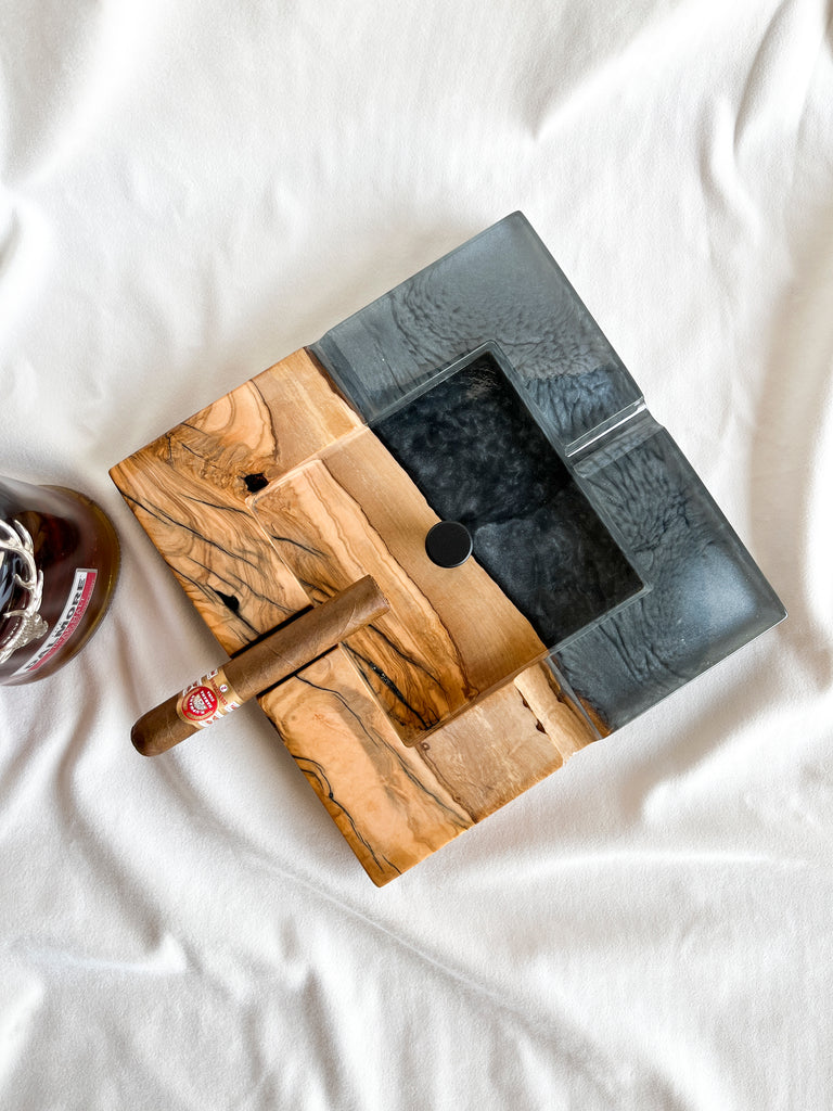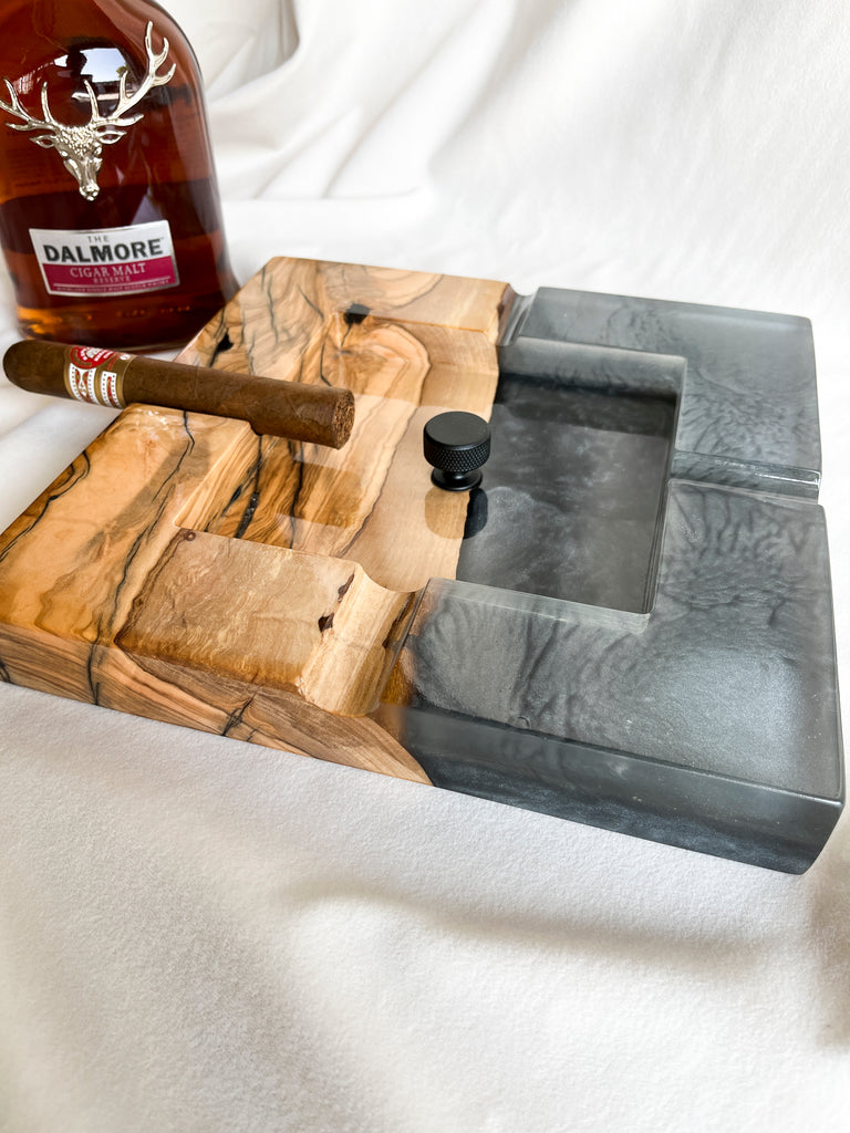 Cigar Ashtray - Olive wood and metallic grey epoxy resin