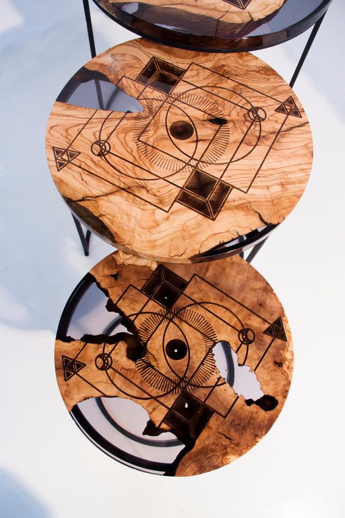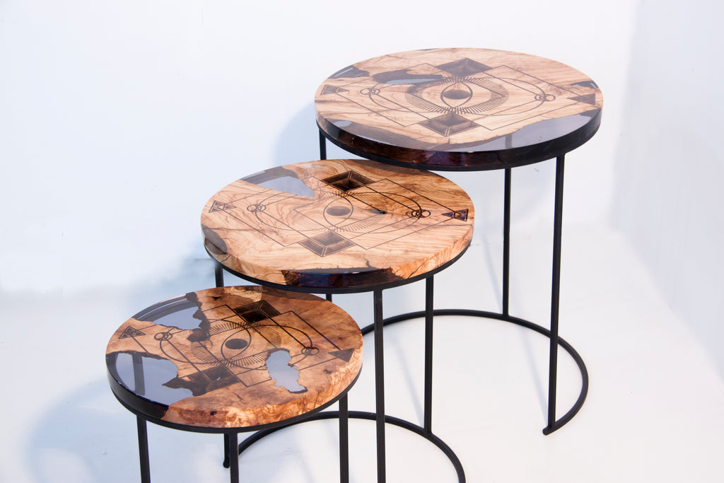 Circa Lotus Epoxy and Wood Coffee Table Set